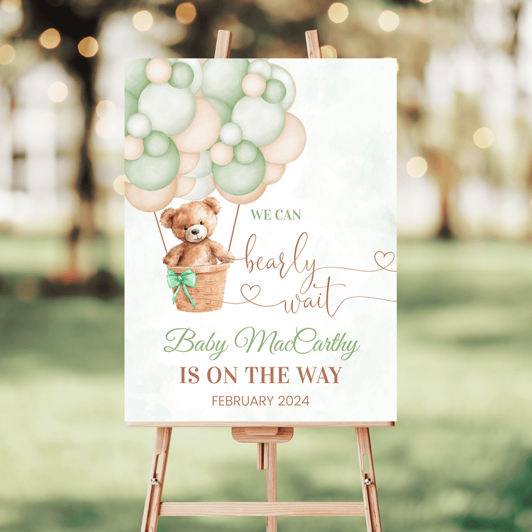 Editable Teddy Bear Baby Shower Welcome Sign T104