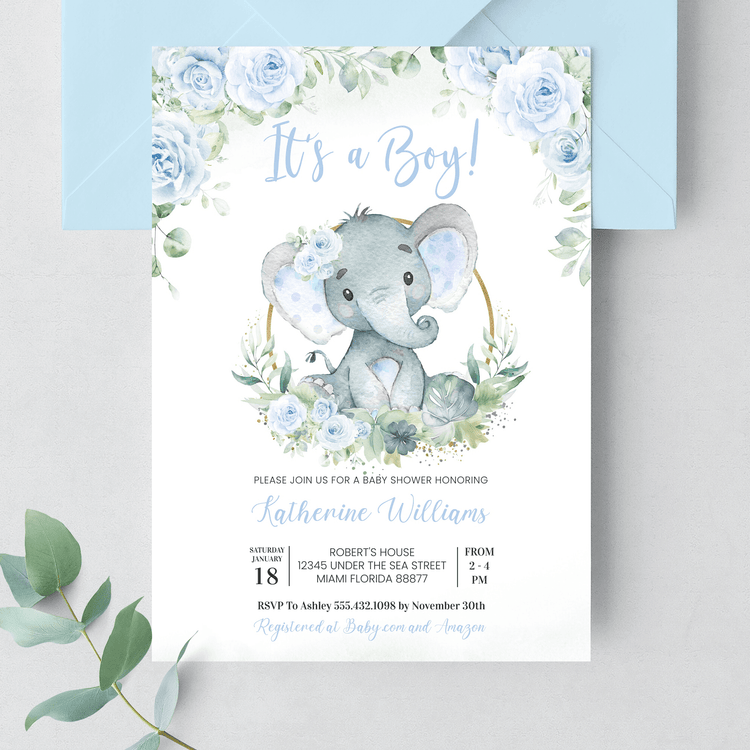 Editable It's a Boy Elephant Baby Shower Invitation E101