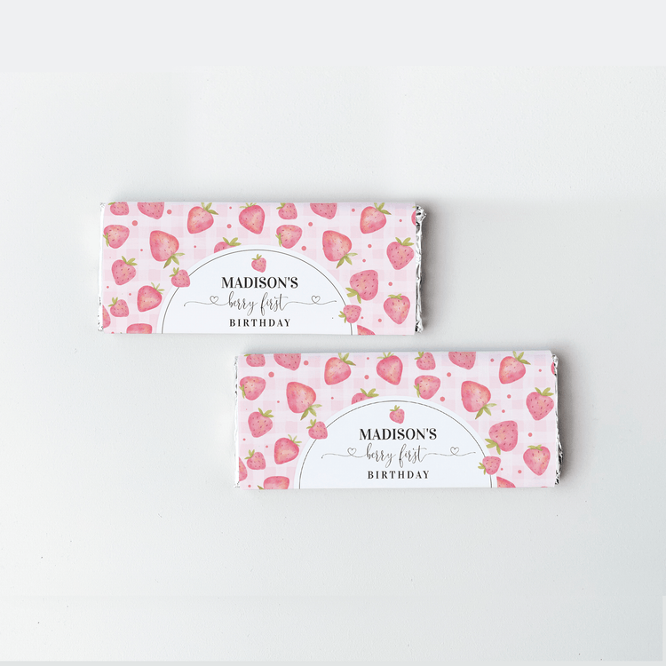 Editable Berry First Birthday Candy Bar Wrapper Strawberry BF03